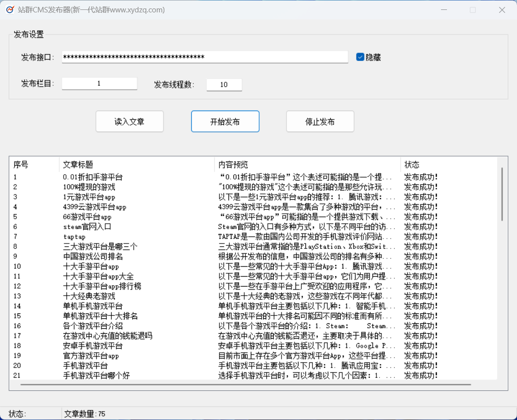 站群CMS是新一代站群开发的一款简单易学的CMS,支持后台手工发布与软件自动秒级大量发布,配合我们的长尾词挖掘工具、AI文章生成(免费)、站群CMS发布器,实现长尾词+AI文章生成=原创内容,把这些内容一键批量发布到新一代的站群CMS即可完成,无需填写其他复杂的内容,速度快,新手5分钟即可学会软件的操作。养站、提升权重、排名首页必备软件。同时也是大部分国内外团队提升流量首选的软件。